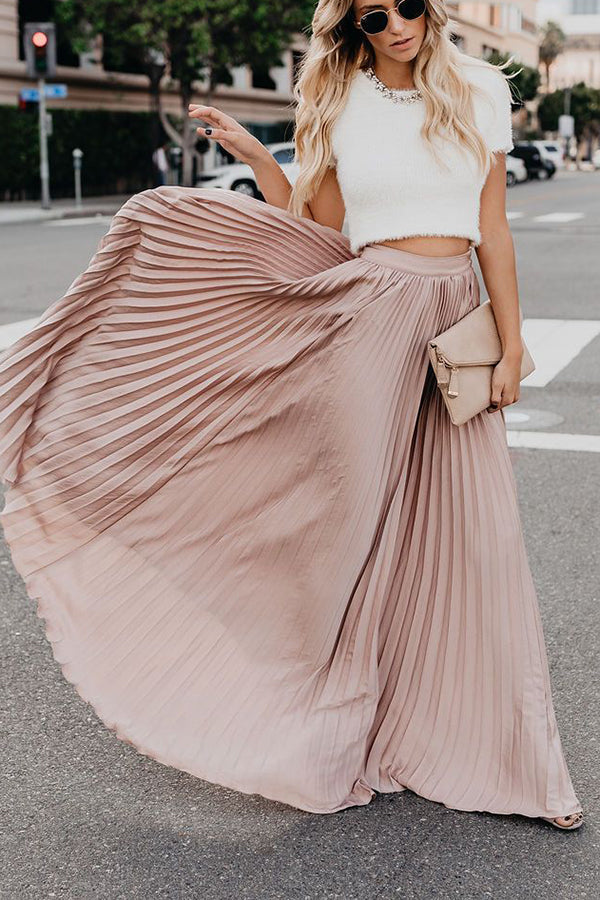 Solid Drawstring Waist Skirt, Elegant Beach Wear Swing Skirt For Spring & Summer, Women's Clothing