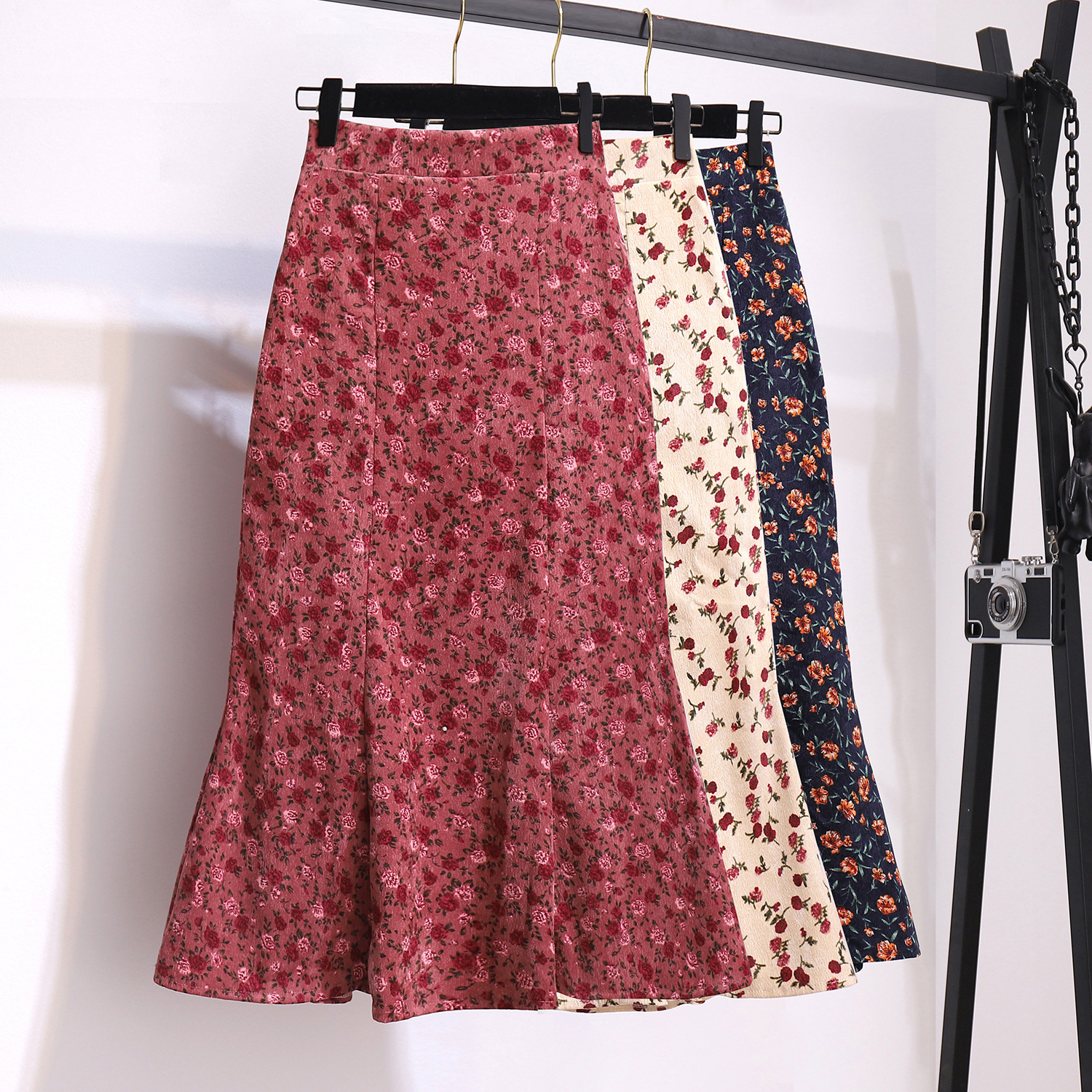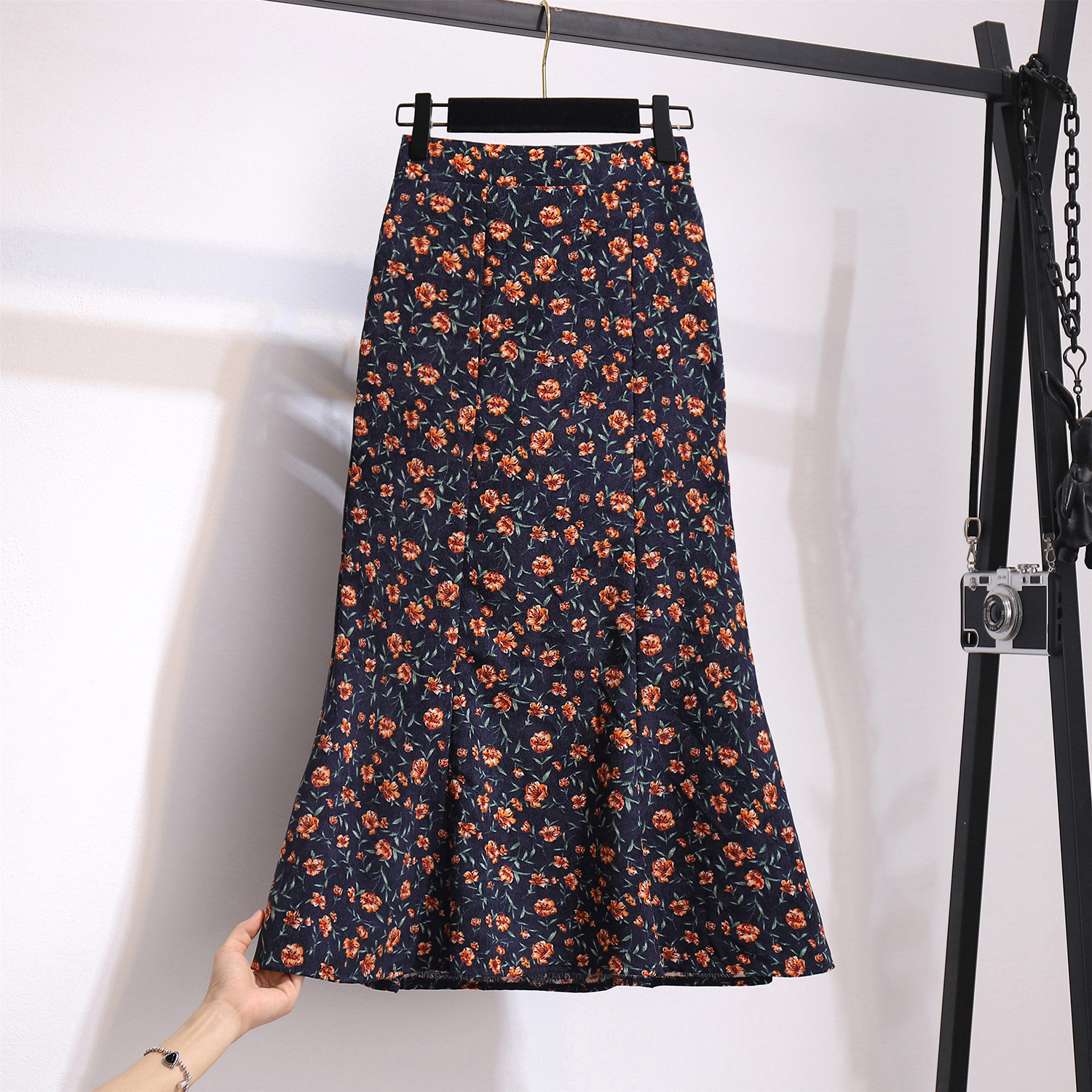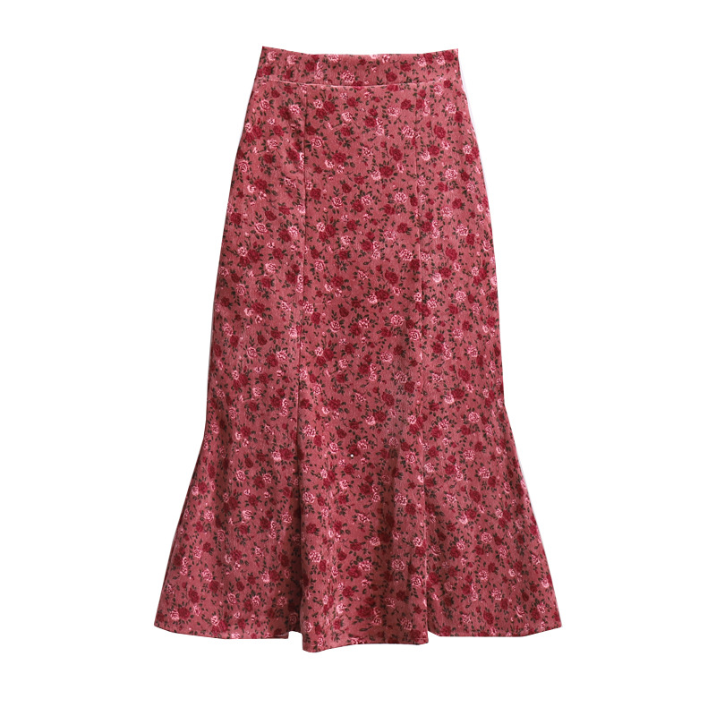 New Floral Fishtail A-line Pack Hip Corduroy Skirt