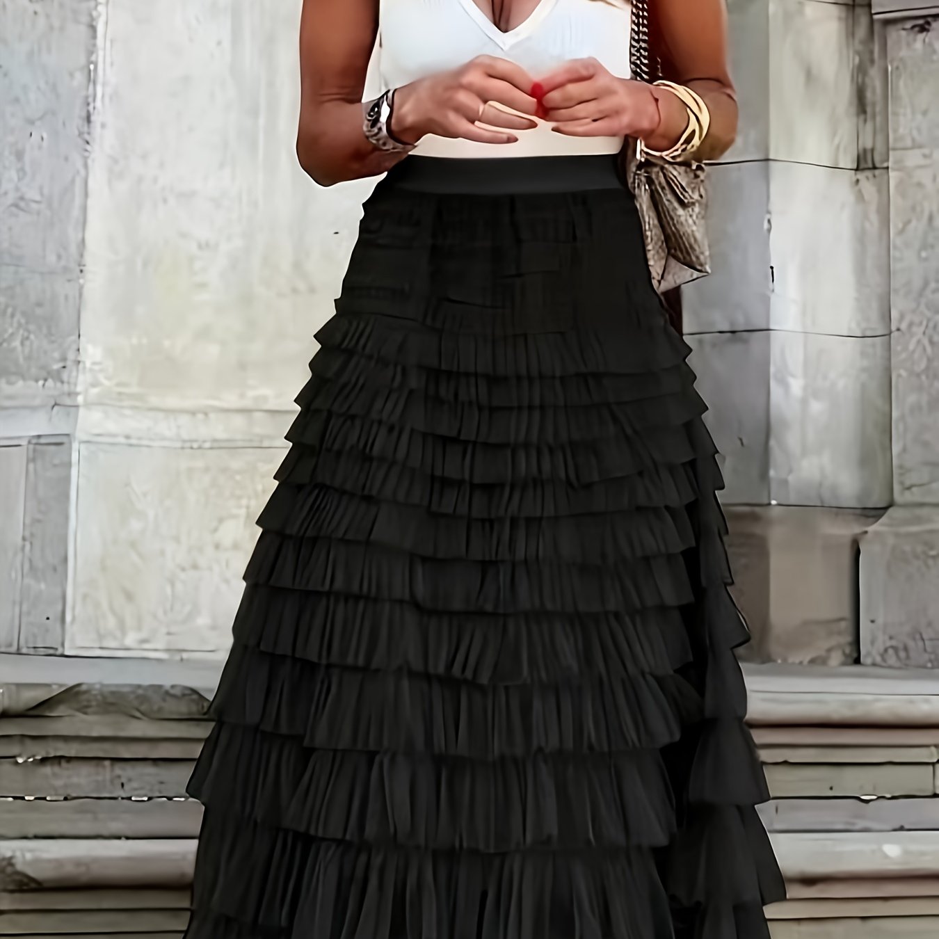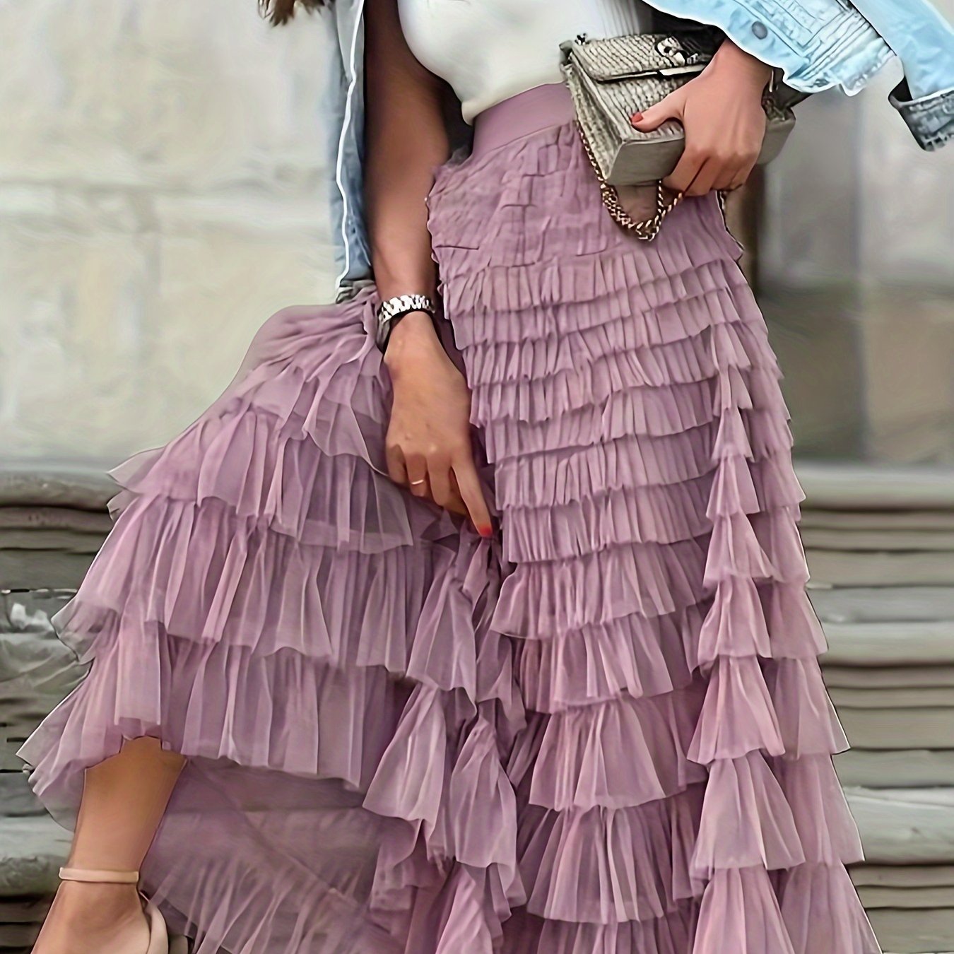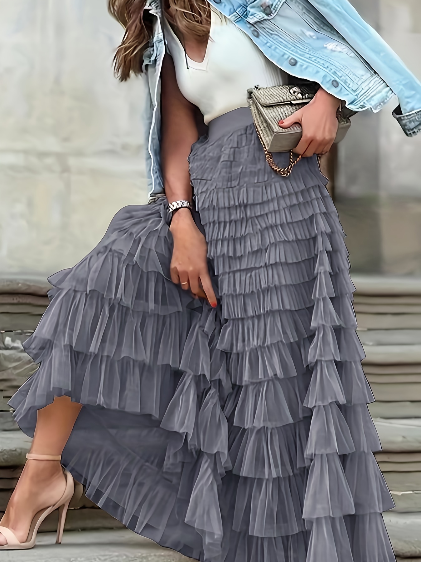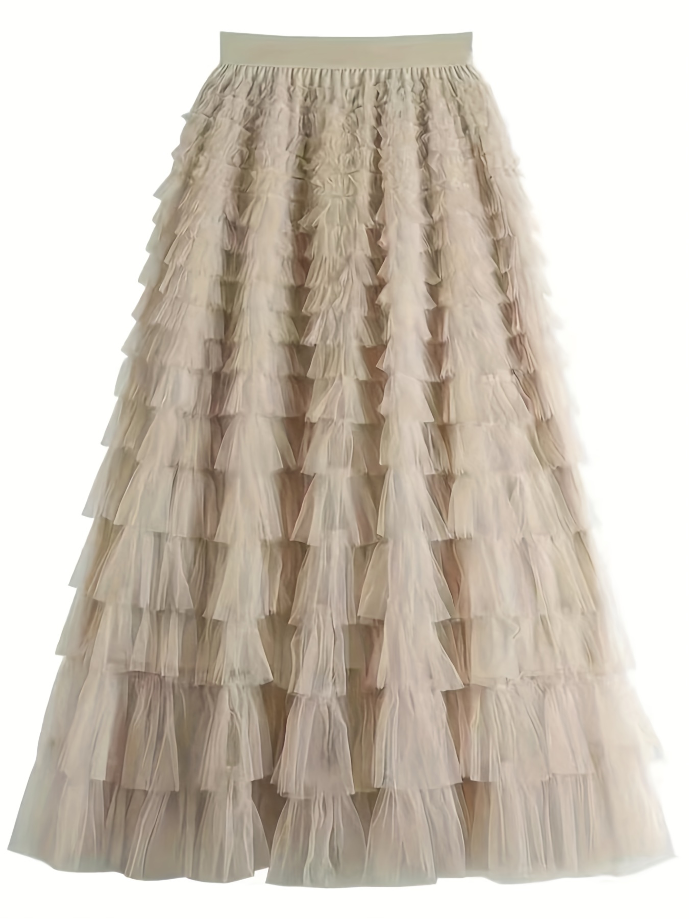 Mesh Layered Hem Skirt, Boho High Waist Skirt, Women's Clothing